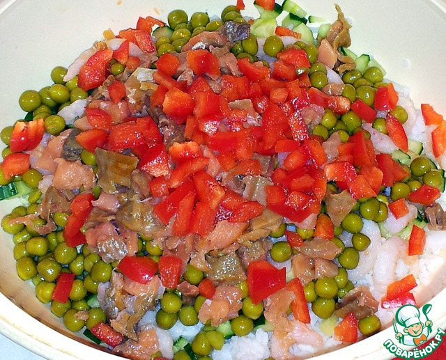 Рисовый салат с рыбным вкусом. Нам понравился вкус салата.