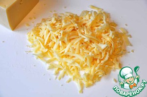 Для этого сыр натираем на тёрке. Сыр можно брать любой, твёрдый. -