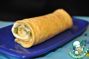 Сворачиваем омлет в рулет.