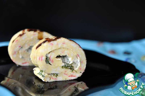 Рецепт «Крабовый рулет с сырно-горчичным соусом»: