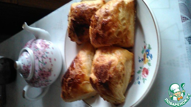 И можно начинать лепить изделия. Я делала слойки с сыром.