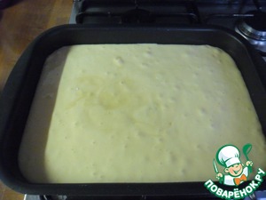 Выливаем тесто в форму поверх ананасов и отправляем в духовку на 20-30 мин.