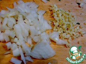 Чеснок и лук почистить и мелко нарезать, зелень помыть и мелко нарезать.