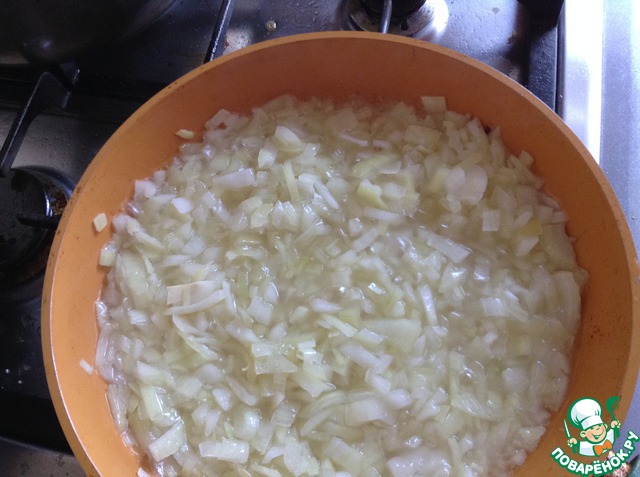 Вылить масло на сковородку, разогреть и добавить лук. Добавить соль и горсть сахара.