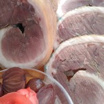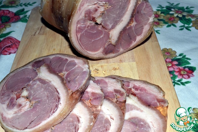 Солёно-варёная свиная рулька. Собственно, это та самая ветчина, которую мы покупаем в супермаркете, но только приготовленная своими руками.