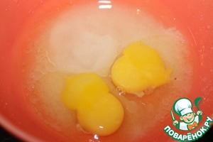 Смешиваем растительное масло с сахаром (110 гр) и яйцами, перемешиваем, взбиваем.