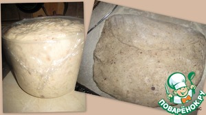 Выброженное тесто расплющите рукой (либо скалкой) в прямоугольник на подпыленной мукой поверхности, сверните его в рулет, запечатывая при каждом витке ребром ладони. Защипните шов. Уложите тестовую заготовку либо в расстоечную корзину швом вверх, либо на пергамент щвом вниз.