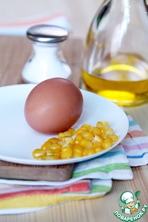 Для этого завтрака нам понадобятся представленные продукты: яйца, соль, оливковое масло, предварительно отваренная кукуруза...