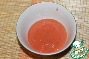 Помидорки нарезать, если шкурка толстая, то ее необходимо снять, предварительно бланшировав в кипятке, у меня домашние с тонкой шкуркой, я снимать не стала. И взбить блендером с лимонным соком и оливковым маслом