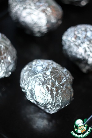 Все аккуратно завернуть и отправить в духовку на 30-50 минут. Все зависит от картофеля. Он должен стать мягким.