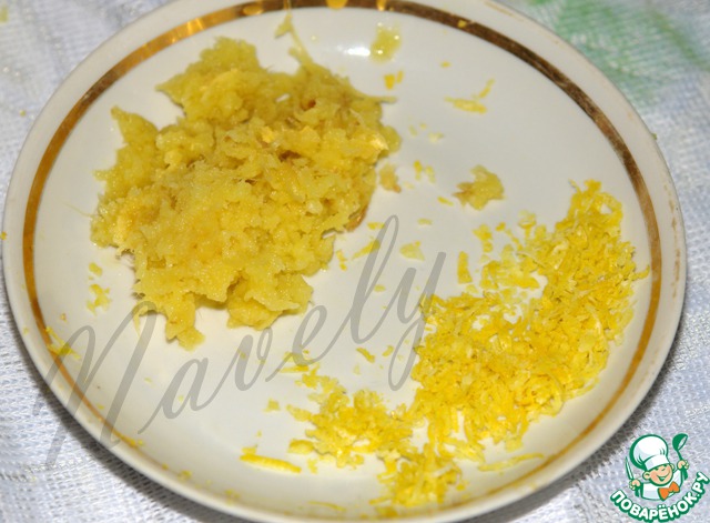 Имбирь натираем на мелкой терке, с половины лимона снимем цедру и выдавливаем сок.