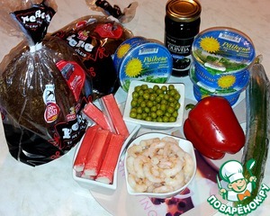 Ингредиенты для «Закусочный торт с крабовыми палочками и креветками»: