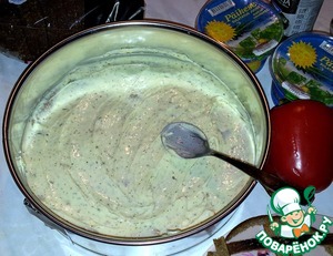 Третий ряд так же хорошо обмазать сыром. На каждый ряд ушло по баночке сыра, т. е три штуки.