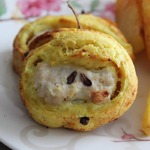 По истечении времени нарезать рулет кольцами по 1,5-2 см