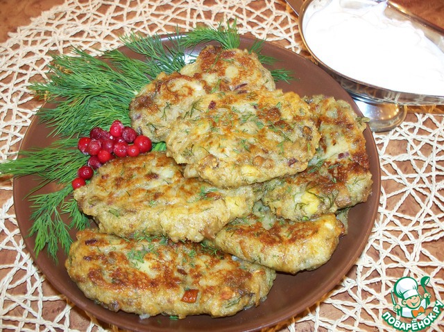 Ложкой формируем котлетки и обжариваем в разогретом оливковом масле.