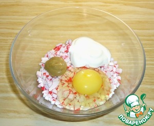 Ингредиенты для «Закусочные мини-биточки с крабовыми палочками»: