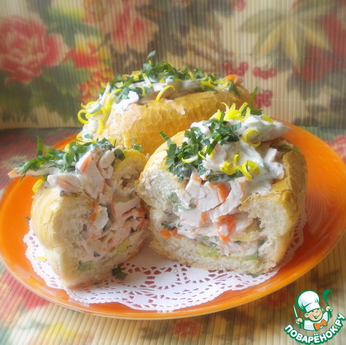 Рецепт «Булочки с крабовыми палочками "А`море"»: