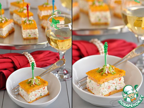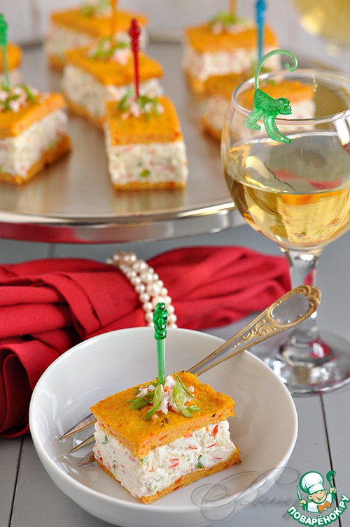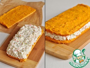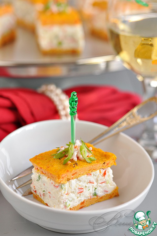 Рецепт «Закусочный крабовый чиз с морковно-творожными коржами»: