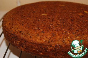 Готовый бисквит освободить от формы, подрезав бока, и остудить на решетке. Дать бисквиту созреть 5-6 часов.