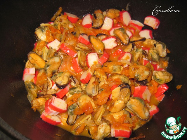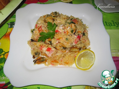 Рецепт «Кус-кус с мидиями и крабовыми палочками»: