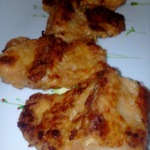 После этого обмакиваем каждый кусочек, не очищая от маринада, в муку и обжариваем в растительном масле на среднем огне, со всех сторон, до зарумянивания.