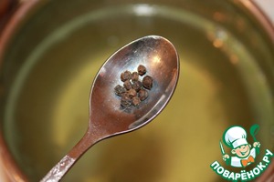 Закипятить бульон, посолить, добавить перец черный горошком.