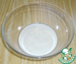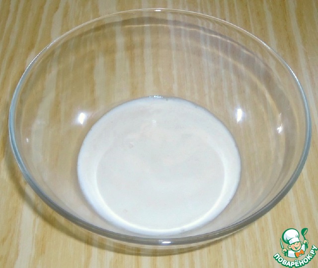 • В тёплой воде растворить дрожжи и сахар, добавить 1 ст. л. муки, перемешать, поставить в тёплое место на 10-15 минут.