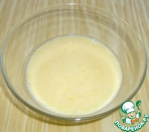 • Сварить кукурузную крупу без добавления соли и сахара, остудить до тёплого состояния. В подошедшие дрожжи добавить варёную кукурузную крупу, яйцо, растительное масло, соль и перемешать.