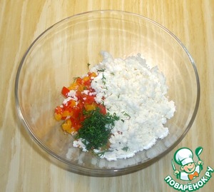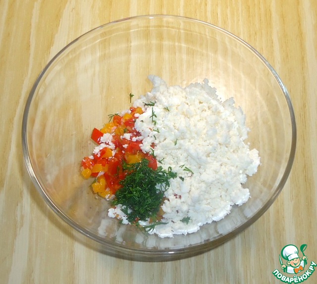 Рецепт «Кукурузные булочки с крабовыми палочками, болгарским перцем и брынзой»: