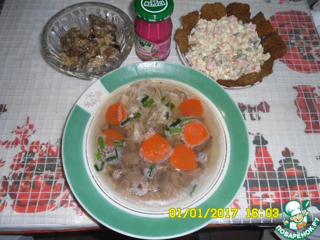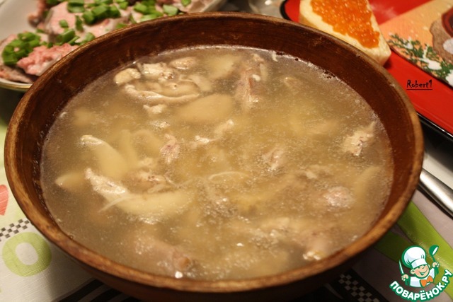 В этот раз у меня вместо курицы индюшиное горло , варила чуть меньше по времени , 5 часов .