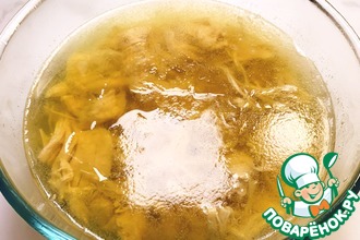 Пока мы занимались мясом, настоялся бульон. Его мы обязательно процеживаем (я это сделала через ситечко).