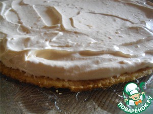 Смазать кремом коржи. Толщина крема равна толщине коржа.