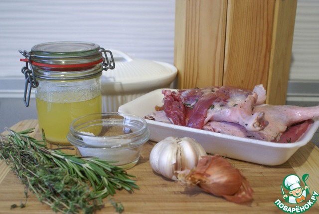 Самое главное для конфи - это жир. Если нет возможности его купить - то придется заняться его вытапливанием самостоятельно. Подготовка начинается за один день до основного времени приготовления.