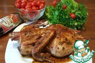 По истечению этого времени, мясо начнет легко отделяться от костей и расползаться на темные волокна. Из кожицы вытопится весь жир и она приобретет золотистый цвет и станет хрустящей.