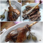 Но из части утки, а именно из грудки я все-таки делаю своего рода консервы. Разобрав ее на волокна и добавив пару горошин черного перца, я укладываю ее в чистую сухую банку и заливаю горячим утиным жиром.
