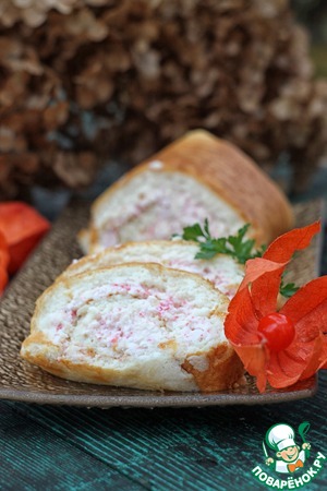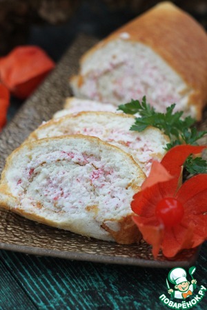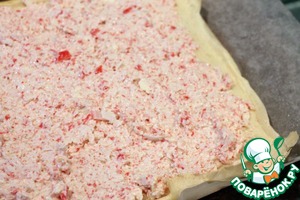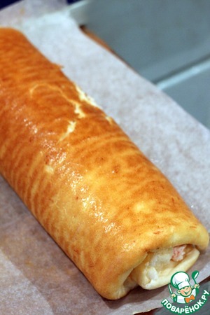 [+5]Тесто получается просто потрясающее!!! Делала рулет уже дважды! Первый раз с крабовыми палочками, только сыра у меня получилось 200 гр - 100 мягкого сыра и плавленый сырок типа Дружба