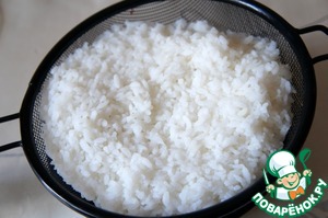 Когда вода хорошо стечет, выложить рис в миску, добавить яйцо и натертый на крупной терке пармезан, перемешать.