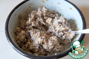 Добавить грибы и все вместе обжарить. Лишний сок слить. Посолить и поперчить.