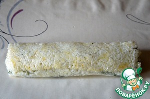 При помощи полотенца и пленки свернуть рулет, обжать его и убрать в холодильник на пару часов.