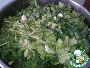 - Зелень (кавкалифра, официальное название-Tordylium apulum. Русского аналога не знаю) — 1/2 пуч.