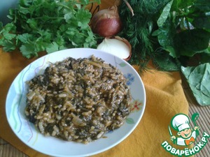 Рис со шпинатом и другой зеленью. Греческое блюдо, очень простое, но очень сытное и полезное. Встретила 2 подобных названия, но суть несколько иная.