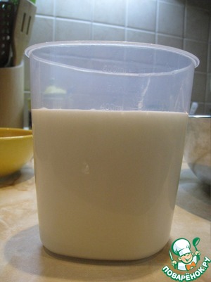 - Кефир (или кислое молоко, домашний йогурт с сывороткой) — 280 мл