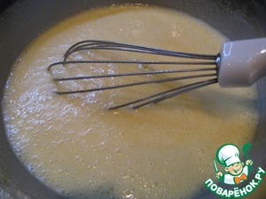 • А мы тем временем яйца с сахаром и ванильным сахаром. Добавляем растопленное масло. Перемешиваем. Можно взять больше масла, грамм 80 - будет еще вкуснее, но тогда больше муки нужно будет.