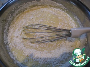 • Теперь понемногу добавляем просеянную муку, перемешивая.