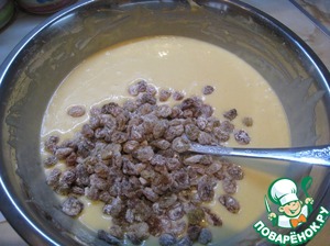 Можно брать не изюм, а фрукты свежие или замороженные (смородина черная, красная, черника...). Тогда их нужно помыть, избавится от лишней влаги, откинув на сито.