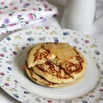 Я сегодня тоже пекла на завтрак панкейки, но по новому рецепту ))