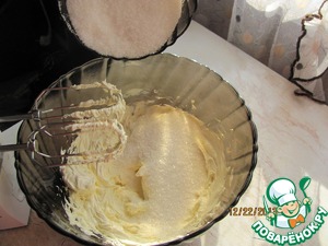 Добавить в масло сахар и взбивать еще 10 минут.