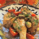Снова положите курицу в сотейник. Влейте вино и доведите до кипения.