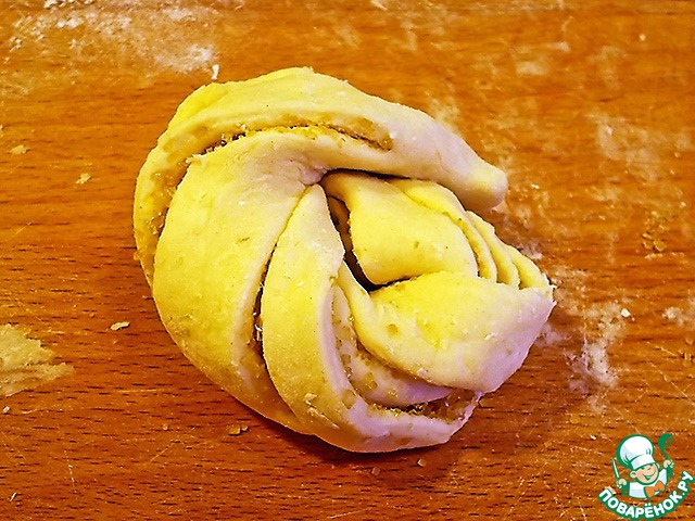 И, наконец, скручиваем тесто в плюшку. Две последние операции очень ответственные, нужно постараться сделать красиво. Внешний вид плюшки - далеко не последнее её качество.