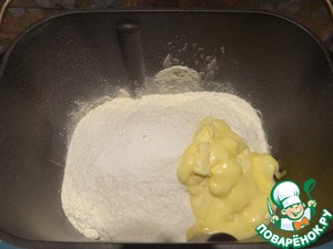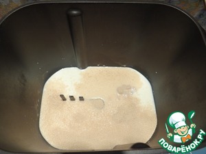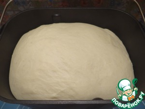 Помещаю ведерко в хлебопечку, включаю режим замеса теста. Даю тесту увеличиться в объеме в 2-3 раза.